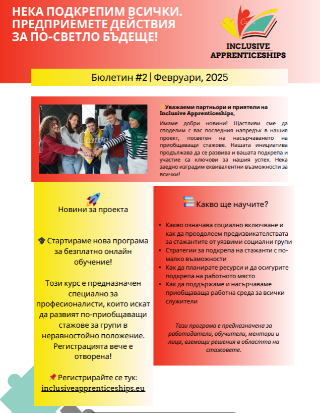 Основните цели, които искаме да постигнем чрез изпълнението на проекта INCLUSIVE APPRENTICESHIPS са: