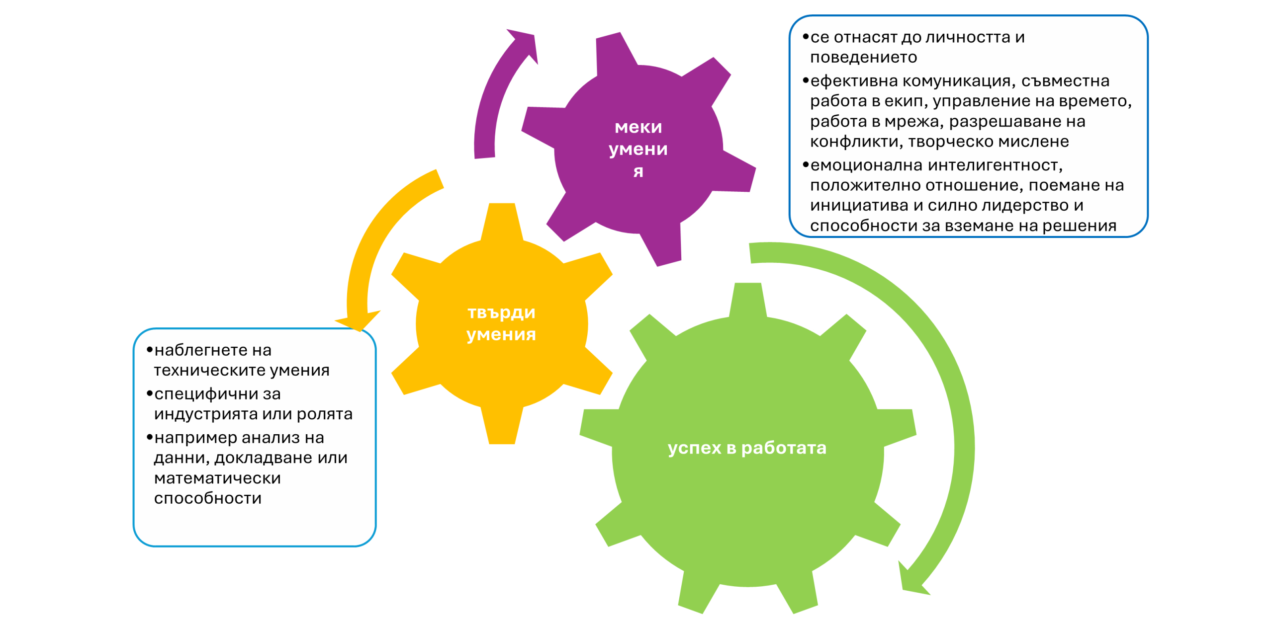 Меките умения са основни лични качества, които допринасят за успеха в работата. Тези умения включват управление на времето, съвместна работа в екип, работа в мрежа, разрешаване на конфликти, творческо мислене и ефективна комуникация. Стажантите с добре развити меки умения са адаптивни, гъвкави и могат да донесат значителни ползи на своите компании.