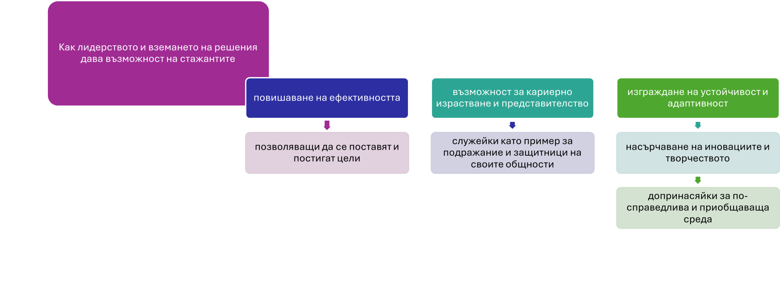 Лидерството и вземането на решения са ключови умения за стажанти в неравностойно положение, тъй като те им дават възможност да преодоляват предизвикателствата и да напредват в кариерата си.