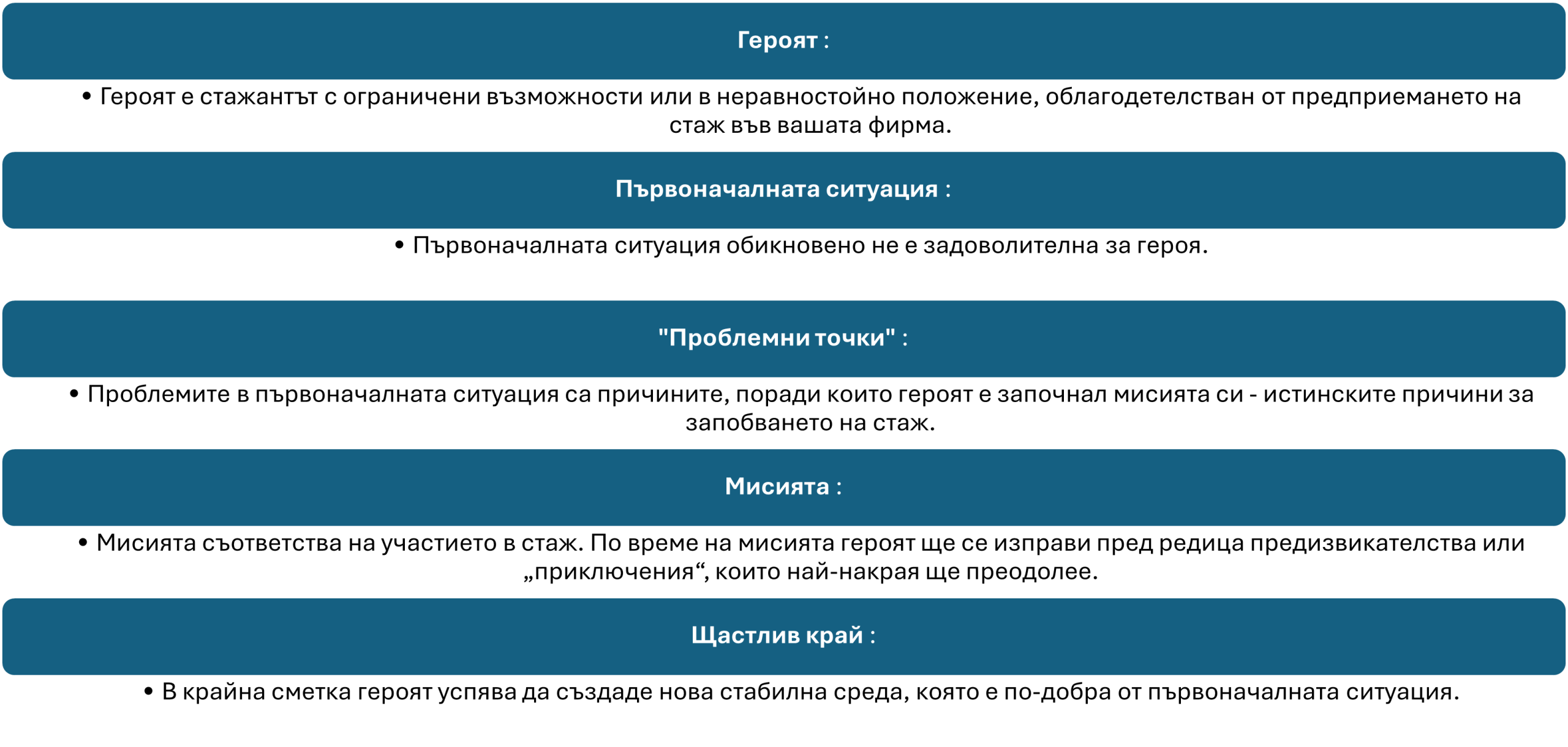 Историята на успеха, представена в казуса, трябва да бъде подобна на холивудски сюжет: