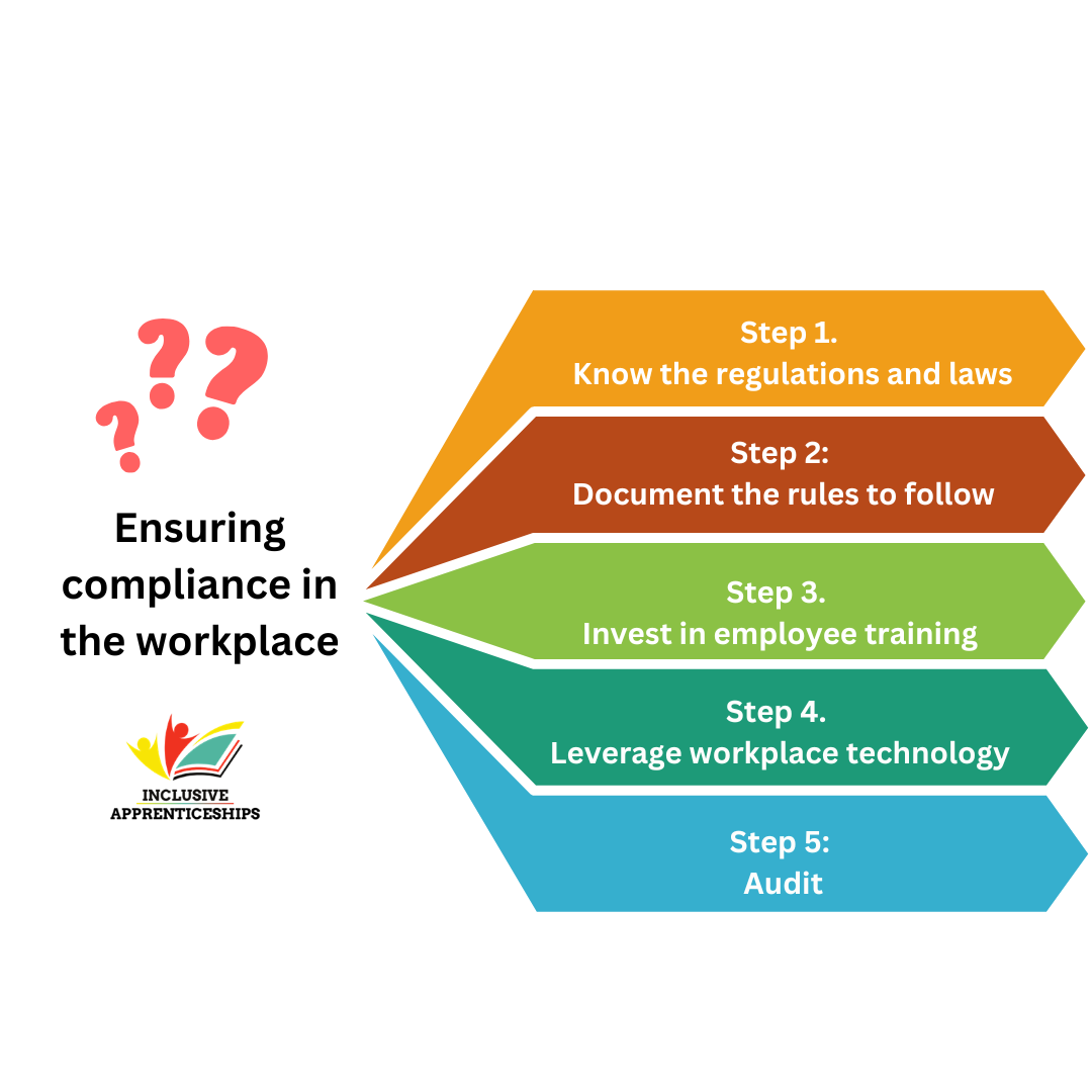 Първата стъпка в осигуряването на съответствие е разбирането на съответните разпоредби и закони, които вашата компания трябва да спазва. Това ще варира в зависимост от функцията на вашата компания, средата на работното място и дори местоположението. Например лаборатория в САЩ с опасни химикали, производствено съоръжение в една държава от ЕС с тежки машини и технически офис в друга държава от ЕС ще имат различни разпоредби за съответствие, които трябва да следват. Ще искате да сте в крак с промените в тези разпоредби и закони.
