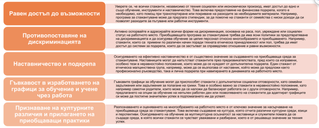 Основни принципи за насърчаване на приобщаването в учебни среди, базирани на учене чрез работа: