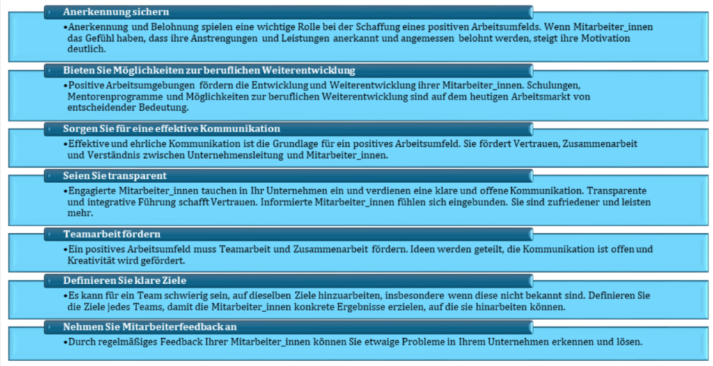 Um ein positives Arbeitsumfeld für Ihre Auszubildenden zu schaffen, können Sie Folgendes in Betracht ziehen: