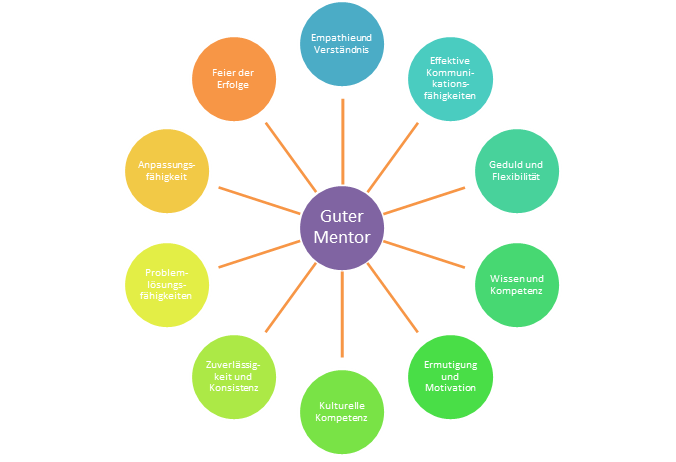 - Geduld und Flexibilität: Geduld im Umgang mit der Lernkurve und den vielfältigen Herausforderungen sowie Flexibilität im Mentoring-Stil.