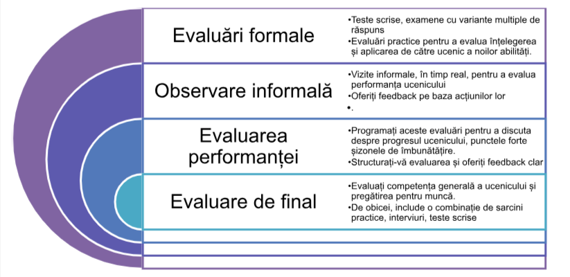 Efectuați evaluări regulate pentru a evalua înțelegerea și aplicarea de către angajat a noilor competențe. Folosiți atât evaluări formale, cât și observații informale pentru a măsura progresul.
